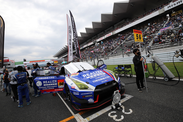 #56 GT-Rは、全国の日産販売会社から選抜されたテクニカルスタッフや日産自動車大学校の学生がチームに参加する「NISSAN MECHANIC CHALLENGE」を実施し、昨年からGT300クラスに参戦しています。今シーズンは新型コロナウイルス感染拡大予防策の影響で、テクニカルスタッフや学生たちはサーキットに入ることができませんでしたが、今大会からようやくそのプログラムが再開。その初戦で見事な優勝を飾りました。